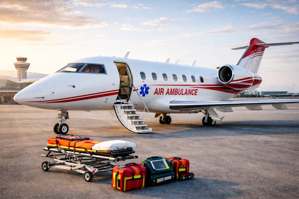 Rapid, critical transport with ICU-grade support — private charters, helicopter & commercial medical escorts